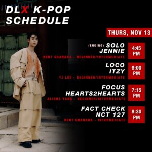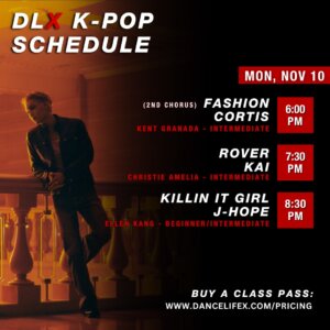 Intermediate – Dance experience is needed. The teaching of the choreography moves quickly, and the steps are more advanced.