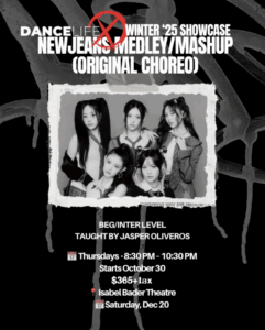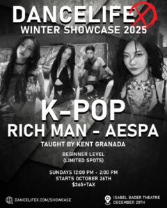Showcase courses focus on teaching you a choreographed routine that will be performed on stage in front of your friends and family. Practices will take place once a week and will run for two hours, an hour and a half is dedicated to teaching you the choreography, while the last half hour is open for students to stay and practice or for instructors to use at their discretion